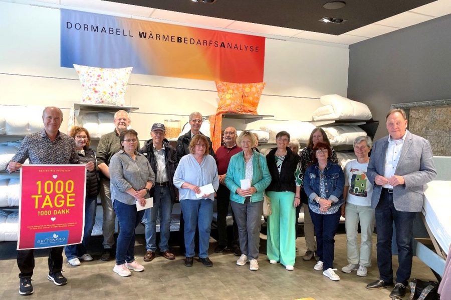 „1000 Tage Betten Friz in Pforzheim – 1000 Dank“ waren Anlass für ein Gewinnspiel, bei dem es 10 Einkaufsgutscheine im Wert von je 100,00€ zu gewinnen gab. Diese wurden im Rahmen einer Feier persönlich an die glücklichen Gewinner übergeben. Geschäftsführer Hans Ulrich Friz betonte die große Bedeutung fachlich fundierter Beratung, wenn es um das gute Schlafen geht. Zudecke, Kopfkissen, Rost und Matratze, Bettgestell und schöne Bettwäsche ergänzen sich harmonisch und zum Menschen individuell passend. Der Service reicht von der Beratung über die Anlieferung und Installation bis zur Reinigung aller Zudeckenarten im eigenen Kompetenzzentrum.