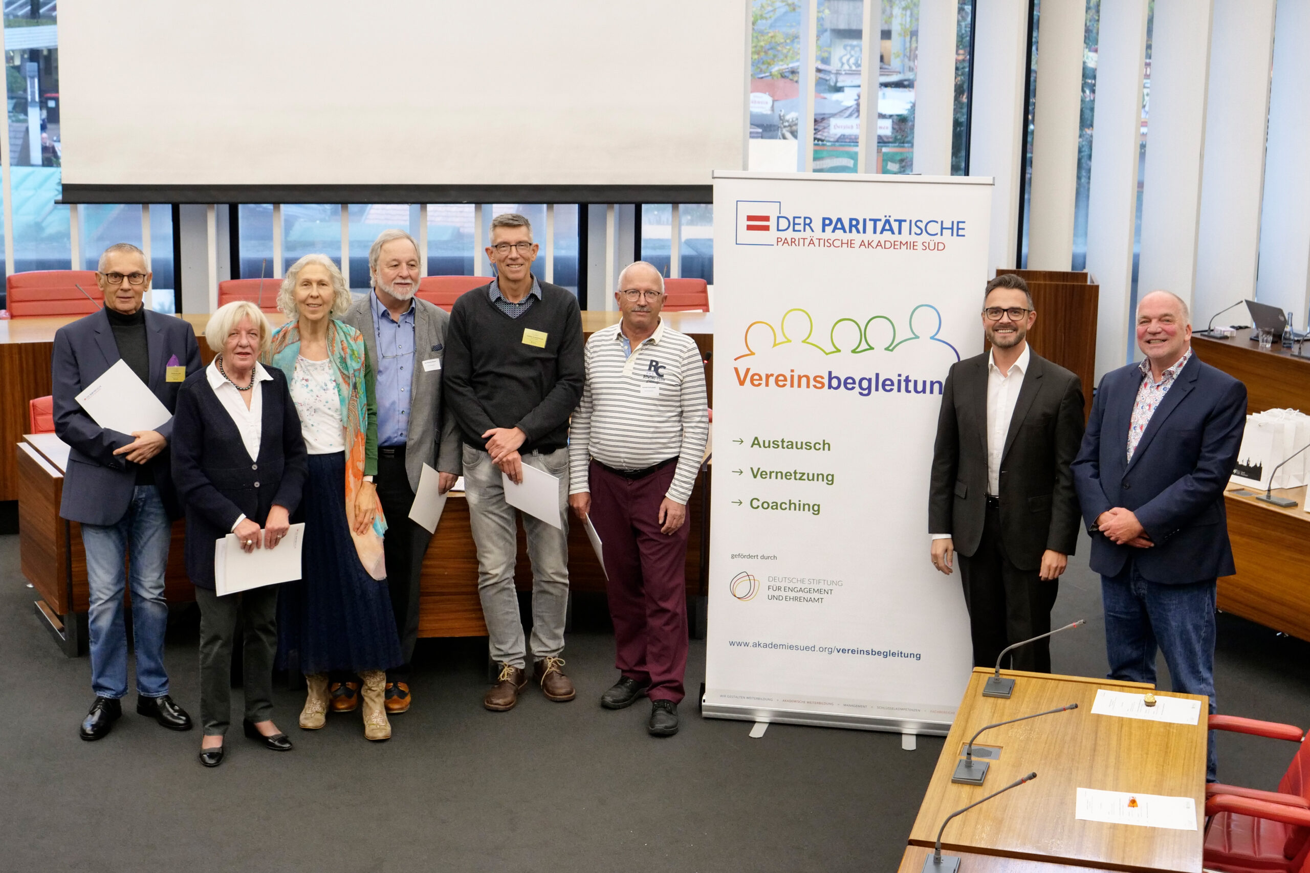 Über mehrere Monate hinweg haben die Vereinsbegleiterinnen und Vereinsbegleiter verschiedene Fortbildungsmodule absolviert. Themen wie Stabwechsel im Verein, kollegiale Beratung und Vereinsrecht standen dabei im Vordergrund. Oberbürgermeister Peter Boch und Ralf Baumgarth von der Paritätische Akademie Süd gGmbH, der als Projektmanager für das Gesamtprojekt agierte, überreichten den Teilnehmenden des Projekts feierlich ihre Zertifikate für ihr Engagement.