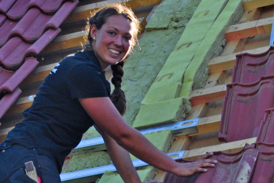Dachdeckerinnen sind auf dem Vormarsch: schweres Tragen ist out, das übernehmen Lastenaufzüge. Foto: ZVDH/akz-o