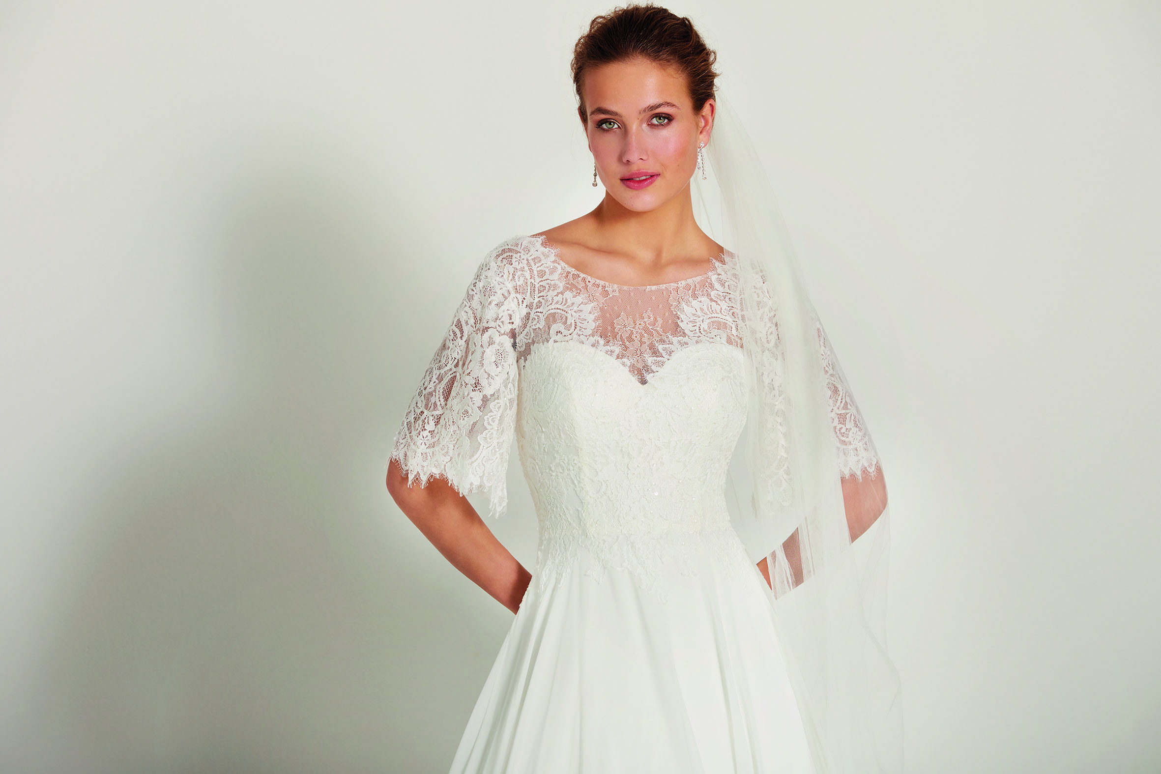 Die kurzen Brautkleider der „Diamonds“-Kollektion versprechen in A-Linie, körperbetont oder fließend, ideale Begleiter für Standesamt-Hochzeiten. Sie beeindrucken mit Allover-Spitze und Transparenzen in Mini- oder Midi-Länge.