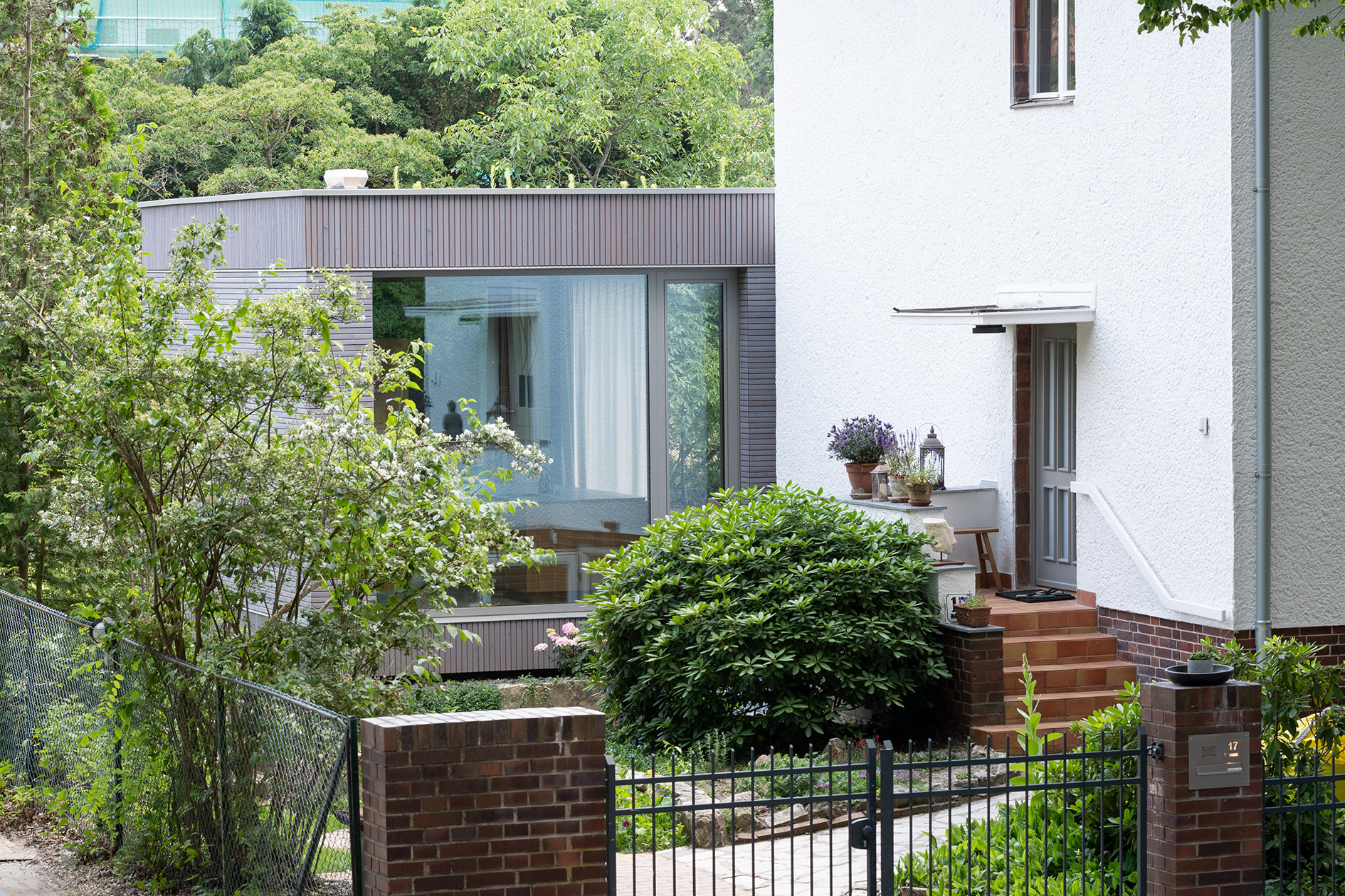 Die Familie wächst, das Haus wird zu klein. Aber umziehen? Anbauen heißt die Devise! So muss man nicht die gewohnte Umgebung verlassen und hat trotzdem mehr Platz. Wie gut ein altes Haus aus Mauerwerk und ein neuer Pavillon aus Beton zusammenpassen, zeigt sich am Beispiel der Villa Wannsee in Berlin. Das Gebäude aus den 30er-Jahren wurde saniert und um einen nahezu stützenlosen Stahlbetonbau ergänzt, der sich als eigenständiger Baukubus an die Rückseite des Altbaus anschließt und zum Garten hin öffnet. Der Quader umfasst mit 90 Quadratmetern fast genauso viel Wohnfläche wie die dreigeschossige Villa, bietet dabei aber alle Vorzüge moderner Architektur. Beispielsweise einen großzügigen Innenraum mit vollflächiger Glasfassade oder homogene Wandflächen und Decken aus Sichtbeton. Letztere wurden direkt vor Ort gegossen und mit einem Oberflächenfinish veredelt. Das sieht nicht nur toll aus, sondern bildet auch einen interessanten Kontrast zum Bestandsgebäude.