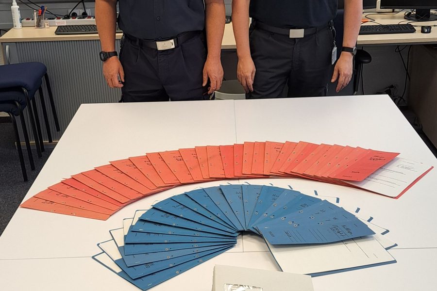 Kreisbrandmeister Carsten Sorg (links) und Bevölkerungsschutz-Sachbearbeiter Thomas Seemann freuen sich über die zahlreichen Zuwendungsbescheide, die an die Kommunen im Enzkreis verschickt werden konnten. Foto: Enzkreis, Christian Thümmel