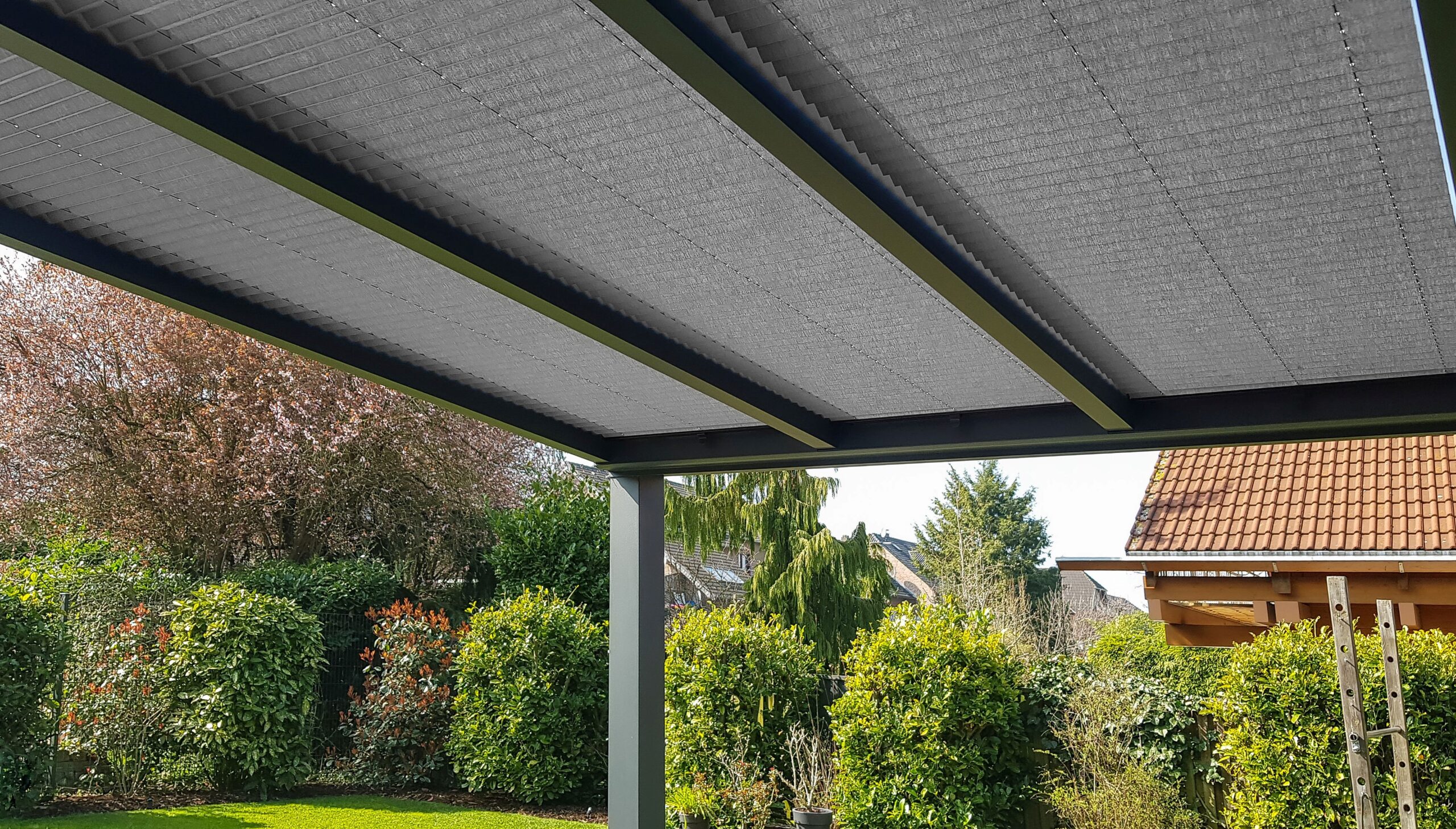 Bunt und farbenfroh stehen Blumen, Sträucher und Bäume schon in voller Pracht. Und auch die Sonnenstrahlen fühlen sich immer intensiver an. Damit die Lounge-Oase auf der Terrasse und der offene Wintergarten entspannende Wohlfühl-Orte bleiben, bieten Outdoor-Plissees für Glas- und Kunststoffdächer den perfekten Schutz vor Hitze, Sonnen- und UV-Strahlen, sind einfach zu befestigen und machen mit der typischen Faltenstruktur auch noch optisch was her.