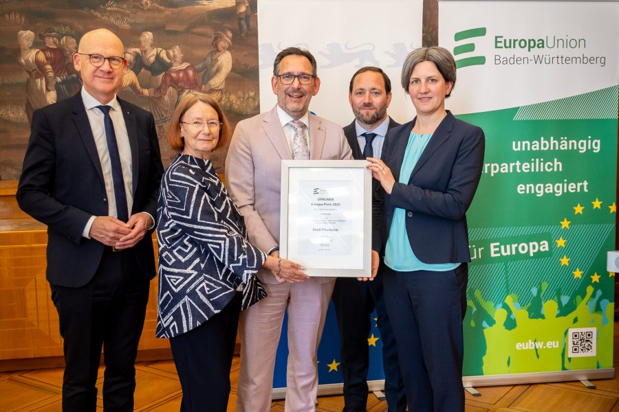 Am diesjährigen Europatag, Freitag, 9. Mai, hat die Stadt Pforzheim den Europa-Preis des Landesverbands Baden-Württemberg der Europa-Union Deutschland erhalten. Die Ehrung fand im Rahmen eines Festakts in der Villa Reitzenstein statt. Dabei wurden Städte, Gemeinden und Landkreise für ihr besonderes Engagement in der kommunalen Europaarbeit gewürdigt. In der Kategorie Stadtkreise hat die Stadt Mannheim den 1. Platz erhalten. Die Stadt Pforzheim teilt sich den 2. Platz mit der Landeshauptstadt Stuttgart.