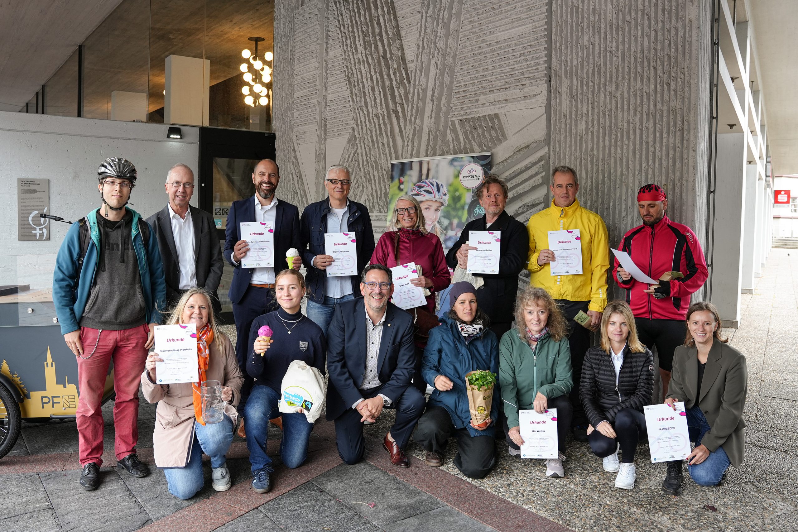 Umweltbürgermeister Tobias Volle war über diesen Erfolg sehr erfreut und zeichnete die aktivsten Teilnehmerinnen und Teilnehmer des diesjährigen STADTRADELN aus.