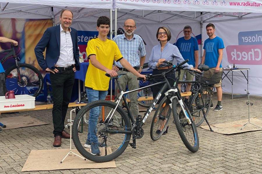 Mehr als 12.000 Kilometer legten insgesamt 79 Schülerinnen, Schüler und Lehrkräfte des Lise-Meitner-Gymnasiums in Königsbach-Stein bei der diesjährigen STADTRADELN-Aktion zurück. Diese beeindruckende Leistung honorierte das Landratsamt Enzkreis gemeinsam mit der Initiative RadKULTUR und belohnte die fleißigen Radlerinnen und Radler mit einem kostenlosen RadCheck an der Schule. Die Kids nutzten die Möglichkeit sehr rege, ihre Fahrräder professionell überprüfen zu lassen. Die fachkundigen Mechaniker begutachteten dabei die Fahrtüchtigkeit und erledigten kleinere Reparaturen direkt an Ort und Stelle. Die jungen Radfans erhielten nebenbei noch wertvolle Tipps und Hinweise für eine sichere Fahrt.