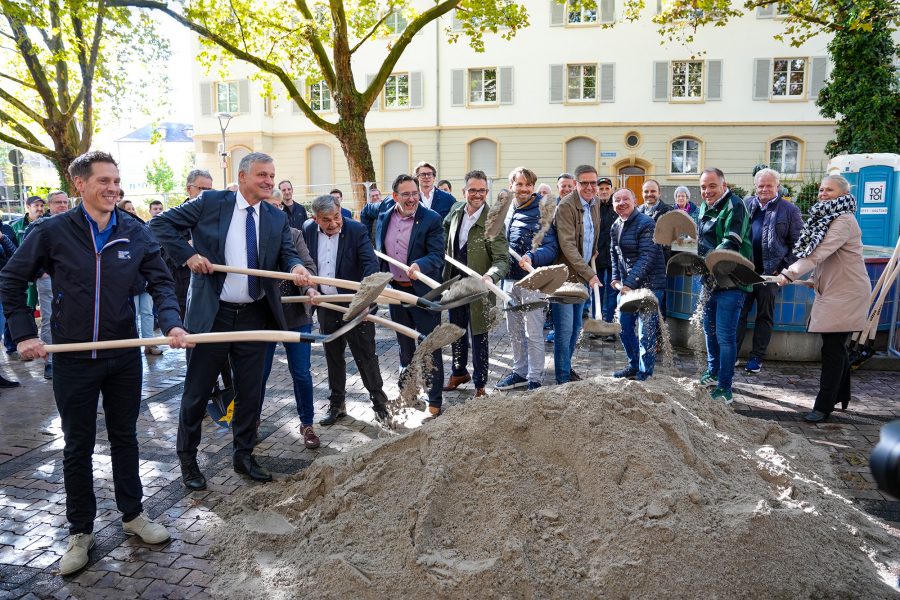 Mit einem symbolischen Spatenstich haben Oberbürgermeister Peter Boch und Baubürgermeister Tobias Volle gemeinsam mit hochkarätigen Gästen am Mittwochnachmittag den Startschuss für die Umgestaltung des Pfälzer Platzes im Rahmen des Stadterneuerungsprojekts „Nordstadt II“ gegeben.
