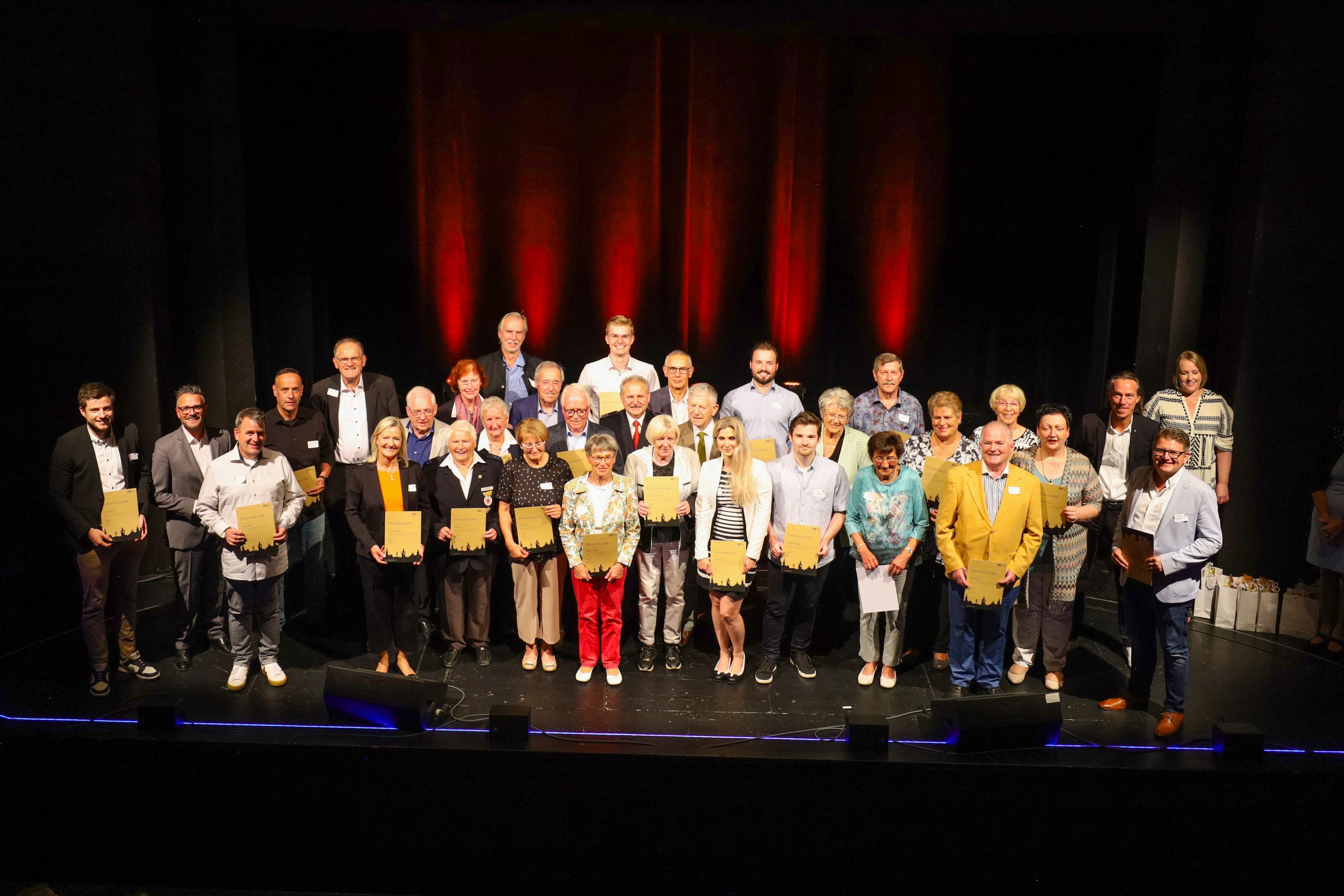 Osterfeld auf dem zweiten Pforzheimer Ehrungsabend fünf gemeinnützige Projekte und 27 Einzelpersonen in insgesamt fünf Kategorien durch Oberbürgermeister Peter Boch für ihr außergewöhnliches bürgerschaftliches Engagement gewürdigt worden. „Ihr Engagement ist eine Inspiration für uns alle“, bekräftigte der Oberbürgermeister während des Ehrungsabends. Der Rathauschef unterstrich mehrfach, wie essenziell wichtig ehrenamtliche Arbeit für das soziokulturelle Stadtklima sei und lobte die Ehrenamtlichen für ihre selbstlosen Anstrengungen und Bemühungen im Sinne der Pforzheimerinnen und Pforzheimer. Bereits im Vorfeld konnten Ehrenamtliche in verschiedenen Kategorien zur Ehrung vorschlagen werden. Eine Jury aus Verwaltungsmitgliedern der Stadt Pforzheim und dem ehrenamtlichen Beteiligungsbeirat der Stadt hat die Nominierten ausgewählt, wenngleich die Achtung und die Dankbarkeit des Oberbürgermeisters allen Engagierten gebührt. „Ehrenamtliche setzen einen unverzichtbaren Grundstein für das Wohlergehen unserer Stadt. Sie zeigen uns durch ihre Taten und Projekte, dass Veränderung möglich ist und dass jede und jeder Einzelne von uns einen Unterschied machen kann“, so Boch.